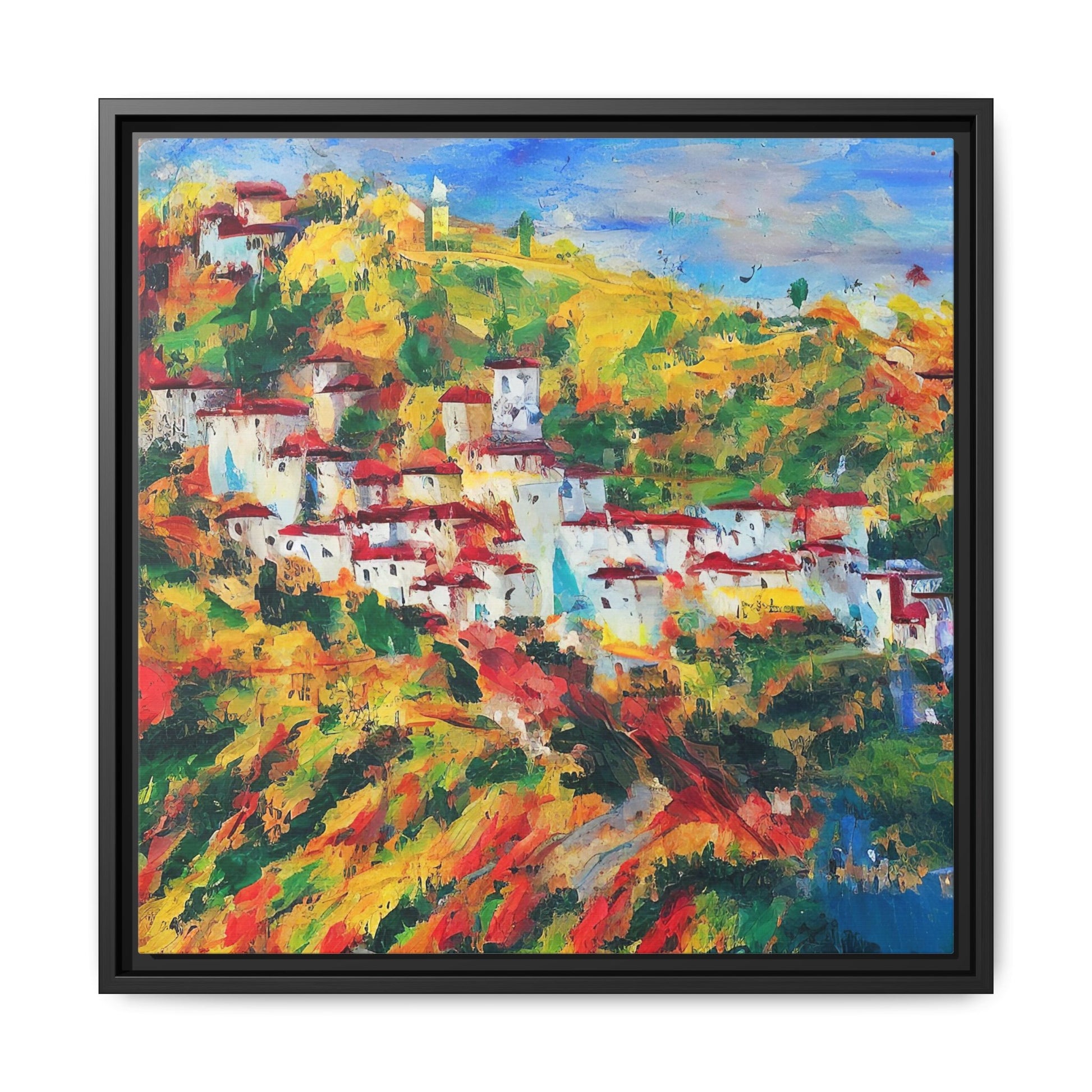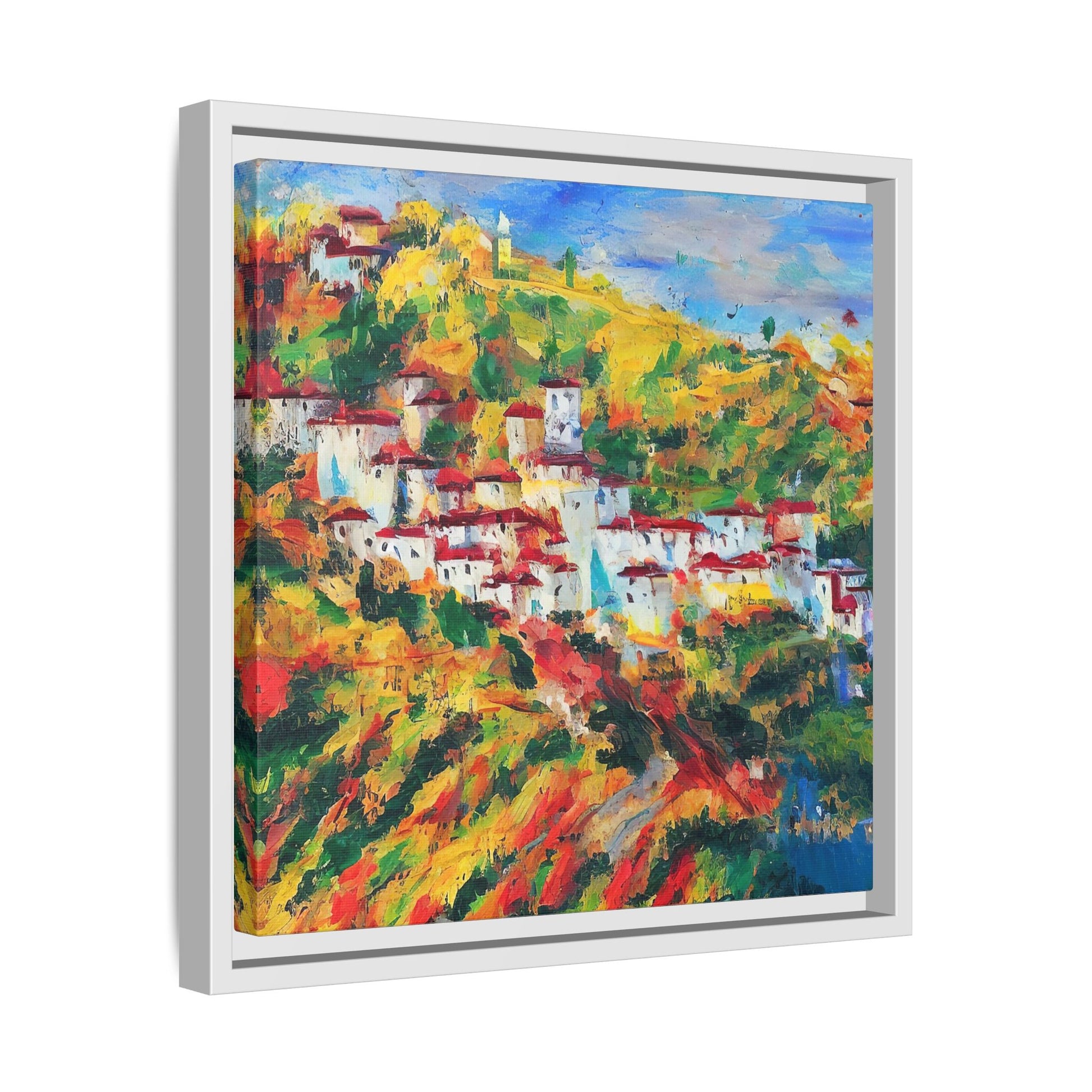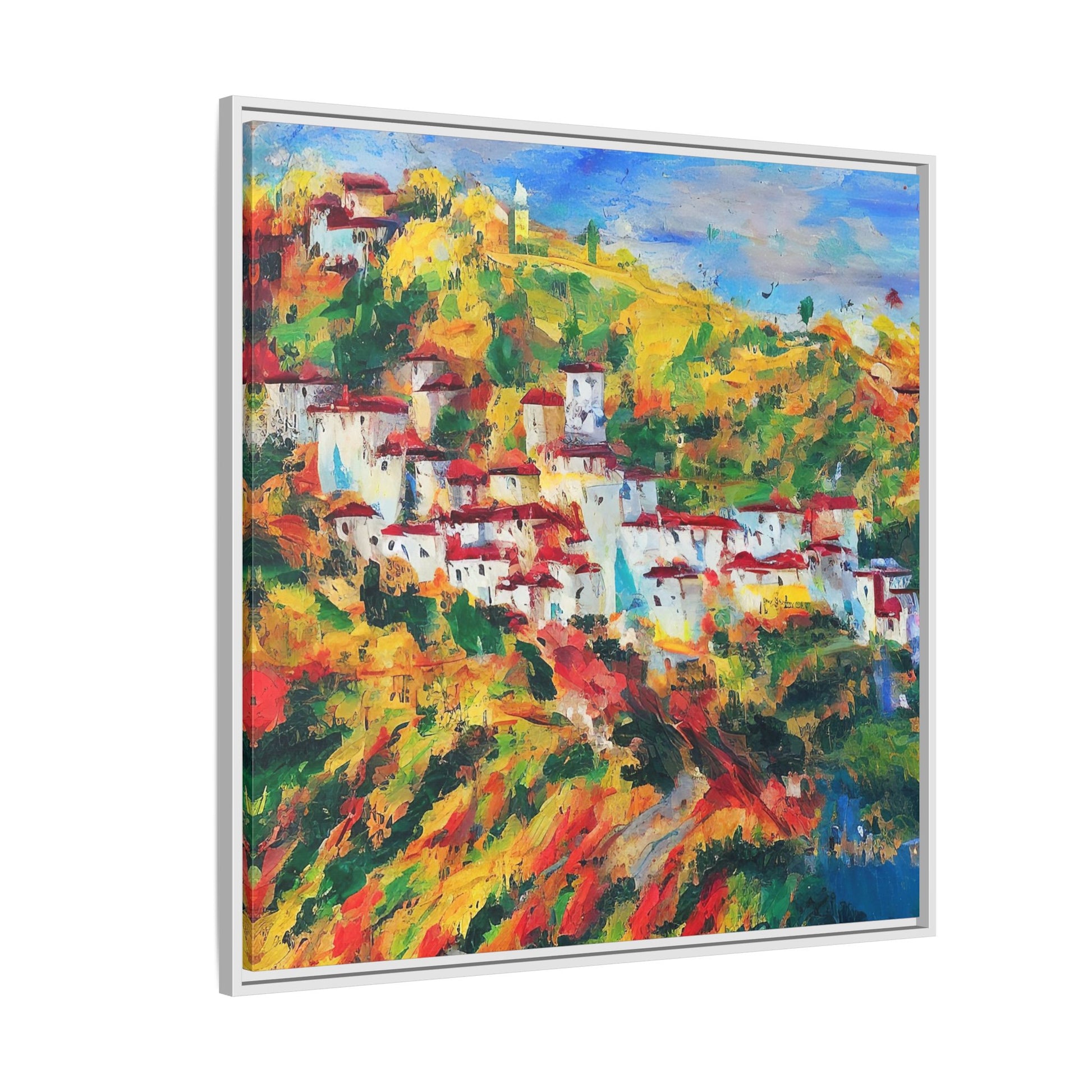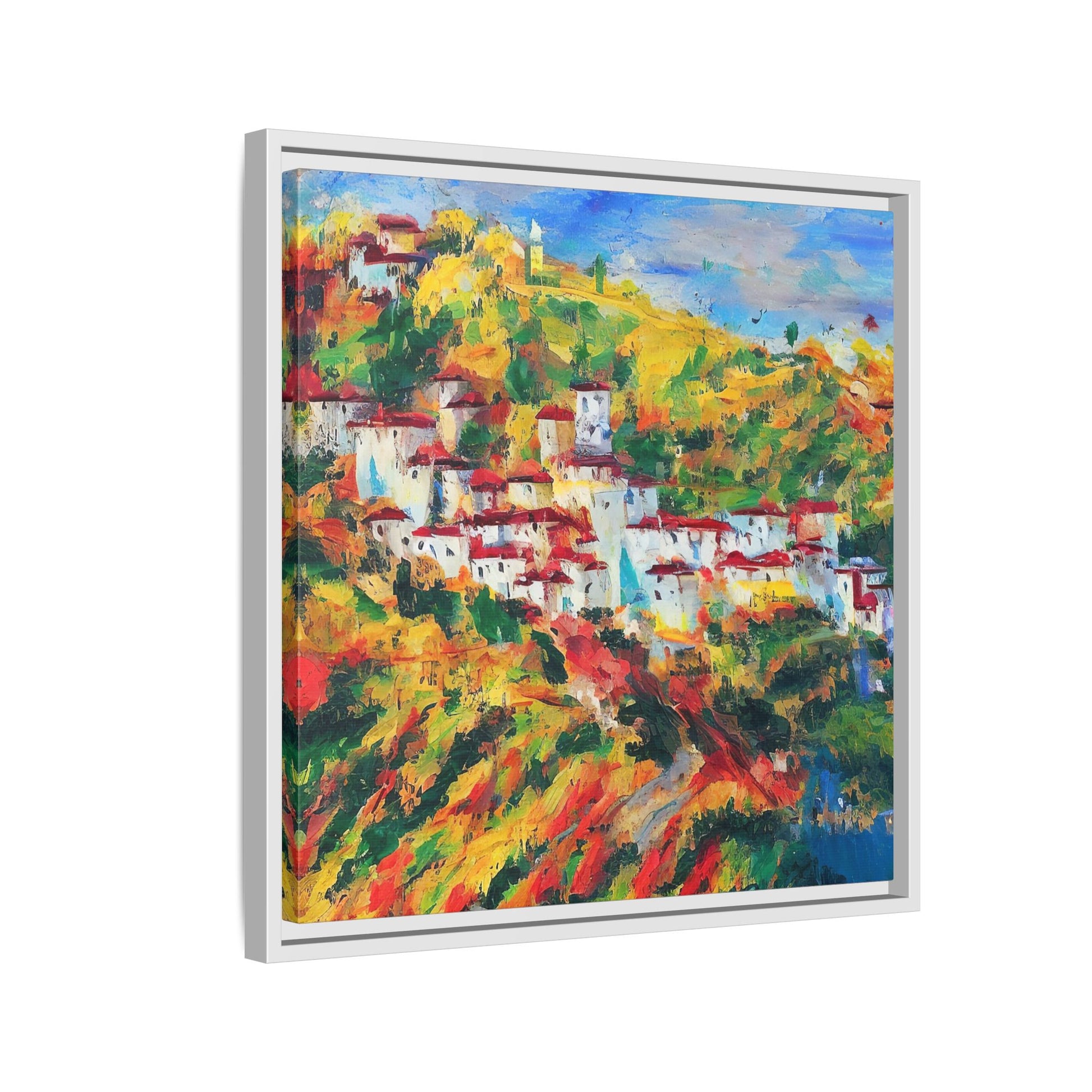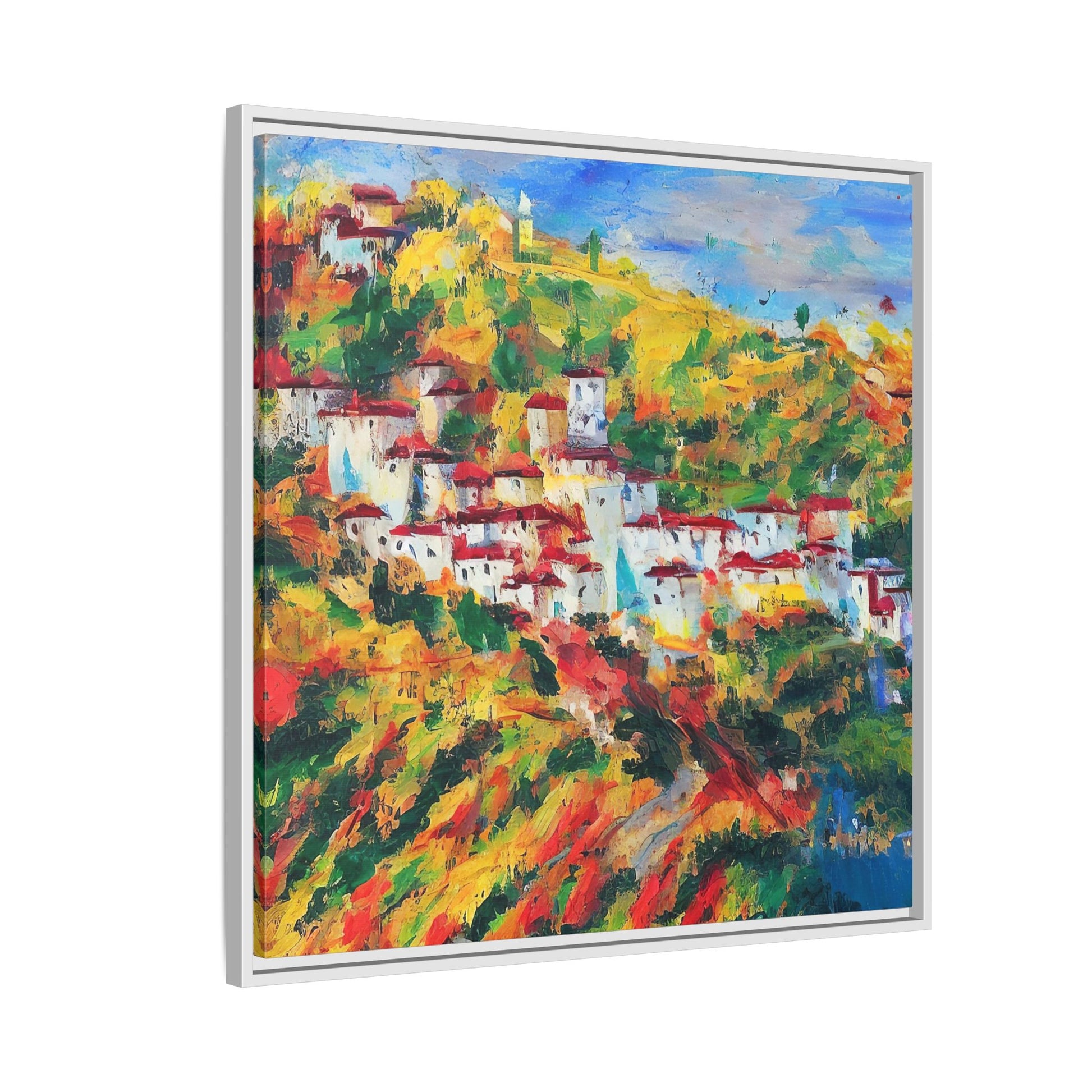 Our framed paintings feature sleek pinewood frames, perfect for any interior.