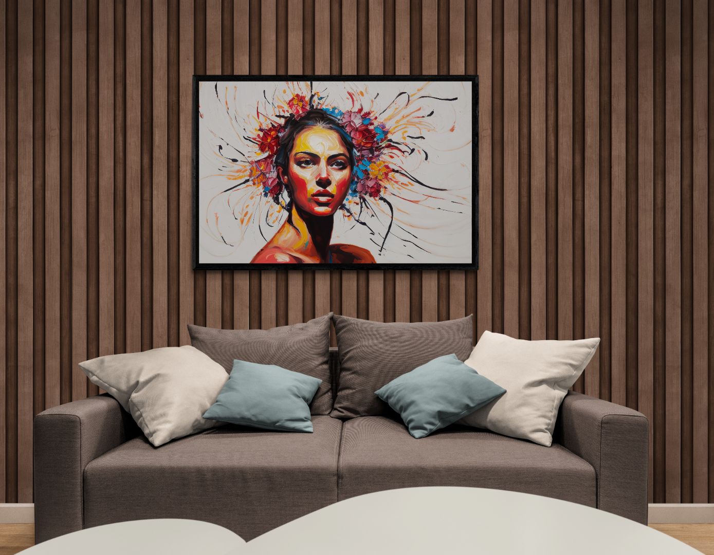 Our framed paintings feature sleek pinewood frames, perfect for any interior.